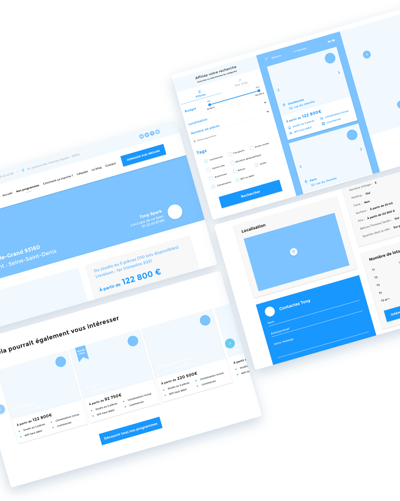 Nous avons développé un questionnaire sur-mesure et valoriser les résultats de recherche afin de mettre en avant les biens disponibles à l’achat. Le parcours utilisateur a été pensé de façon à rendre l’expérience agréable.